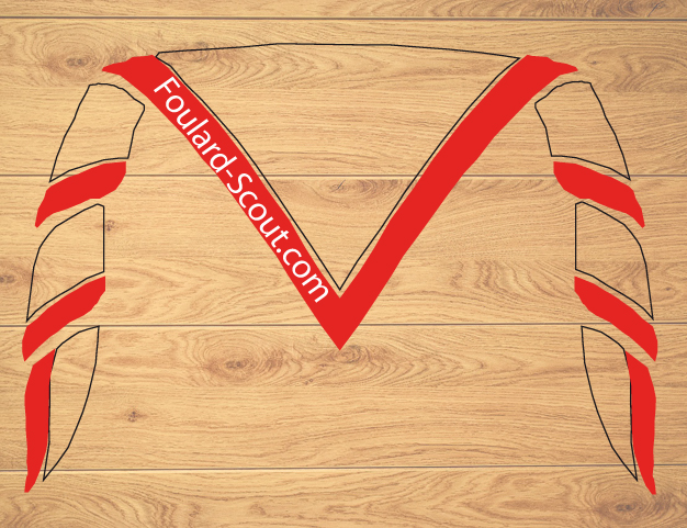 La bordure est réalisée dans le même tissu que tous nos foulards scouts ce qui donne un bel ensemble homogène.